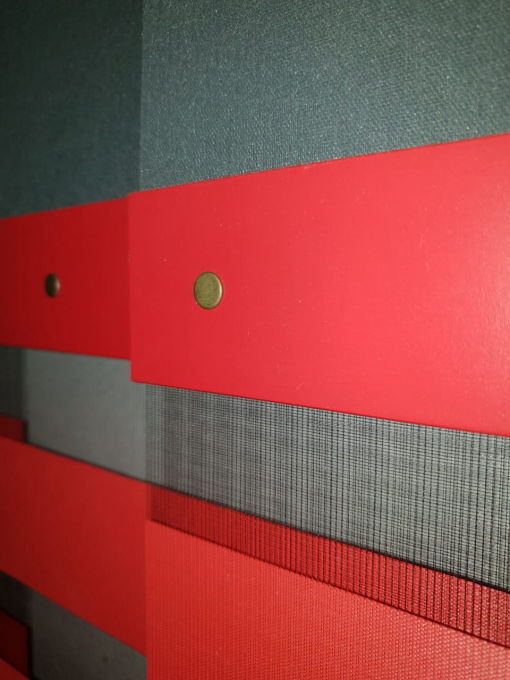 Panels from 40cm to 120cm glide on a special aluminium track. Stacking one behind the other, these panels can be made up of almost any fabric, including woven wood.